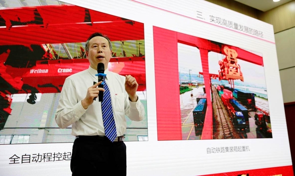 俞有飛從“為什么要高質量發展、高質量發展的內涵及實現高質量發展的路徑”三個方面分享了我國起重機行業高質量發展情況。他表示,中國的起重裝備產業是新中國成立以后才逐漸形成的。隨著經濟持續快速發展,我國起重裝備產業發展取得了長足進步,并已成為全球最大的起重機市場。俞有飛指出,我國起重裝備產業將以集聚化為經濟發展趨勢,推動起重機技術朝著“綠色化、智能化、定制化、網絡化”方向發展,將衛華品牌推向國際,為振興中華民族工業貢獻應有的力量。